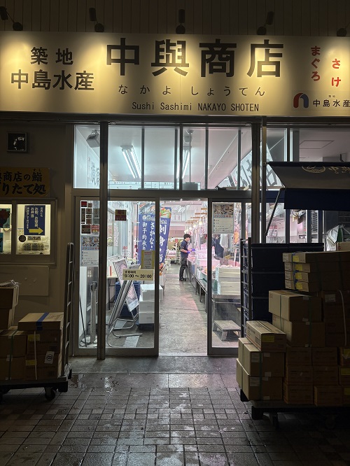 30日朝6時半のパルム商店街、サロン近くの魚屋さん「中興商店」は早朝から開店準備中でした。