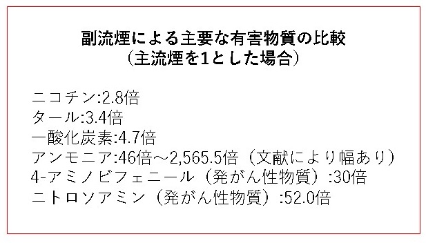そして以下講義で衝撃を受けた内容です。副流煙は悪いと聞いていましたが本当に体によくないのですね。