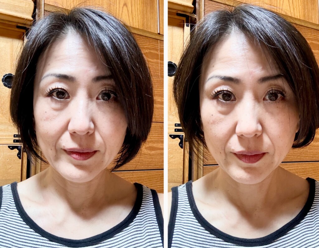 下の写真、2/4あっこちゃんのZOOM小顔リフトアップエクササイズに参加したビフォーアフター写真です。